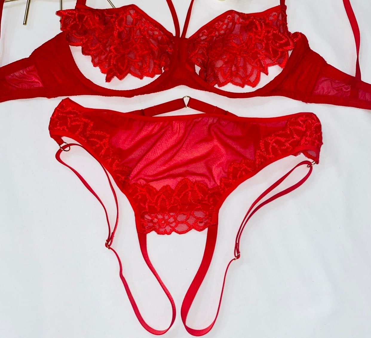 Sexy Red Lace Lingerie Set Open Crotch Lingerie Sheer Open Lingerie Harness Open Cupless is a popular picture for sexy and hot.