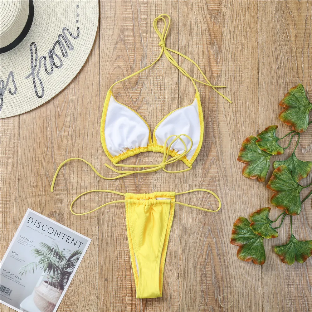 Sexy Triángulo Bikini Letras Vintage De Tul Traje De Baño Bordado Traje De Baño Spa Alfabetos