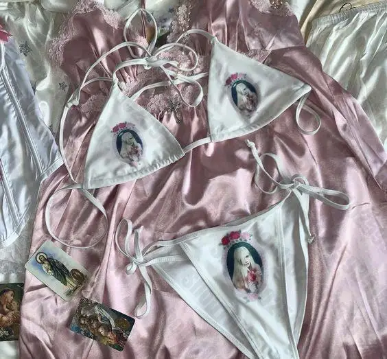 Sexy Women Jesus Y2k Star Girl Graphic Swimwear Bikini Set Bra Tie Side G String Thong is a popular picture for sexy and hot.