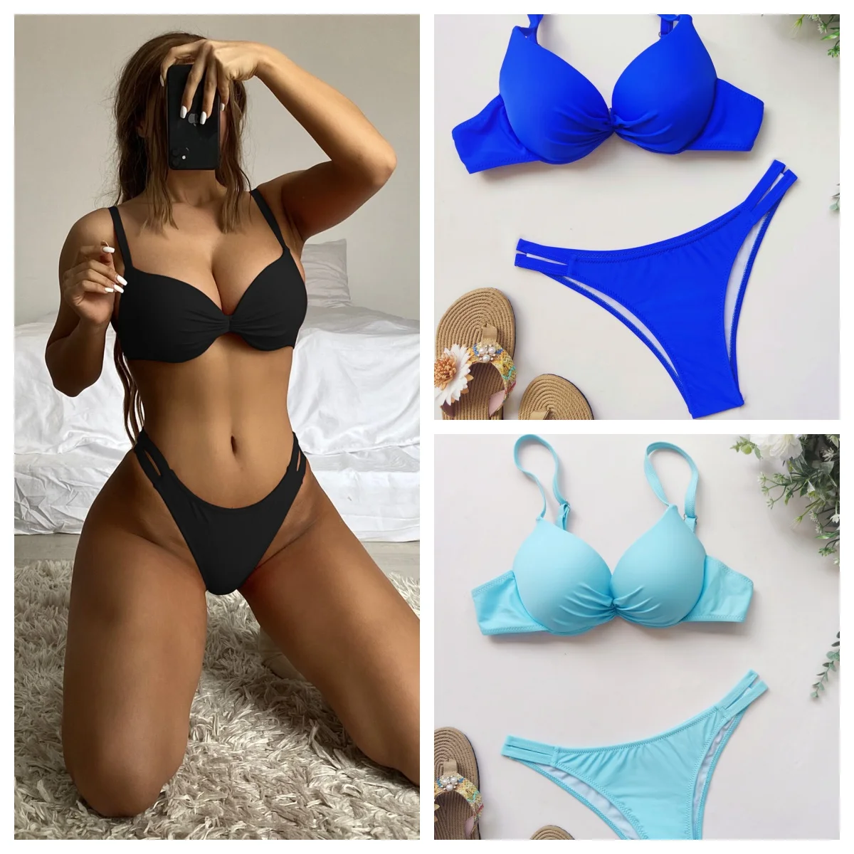 Tag : Sexy Solid Color Bikini New Women Swimsuit Female Swimwear Thong Bikinis Set Brazilian Halter