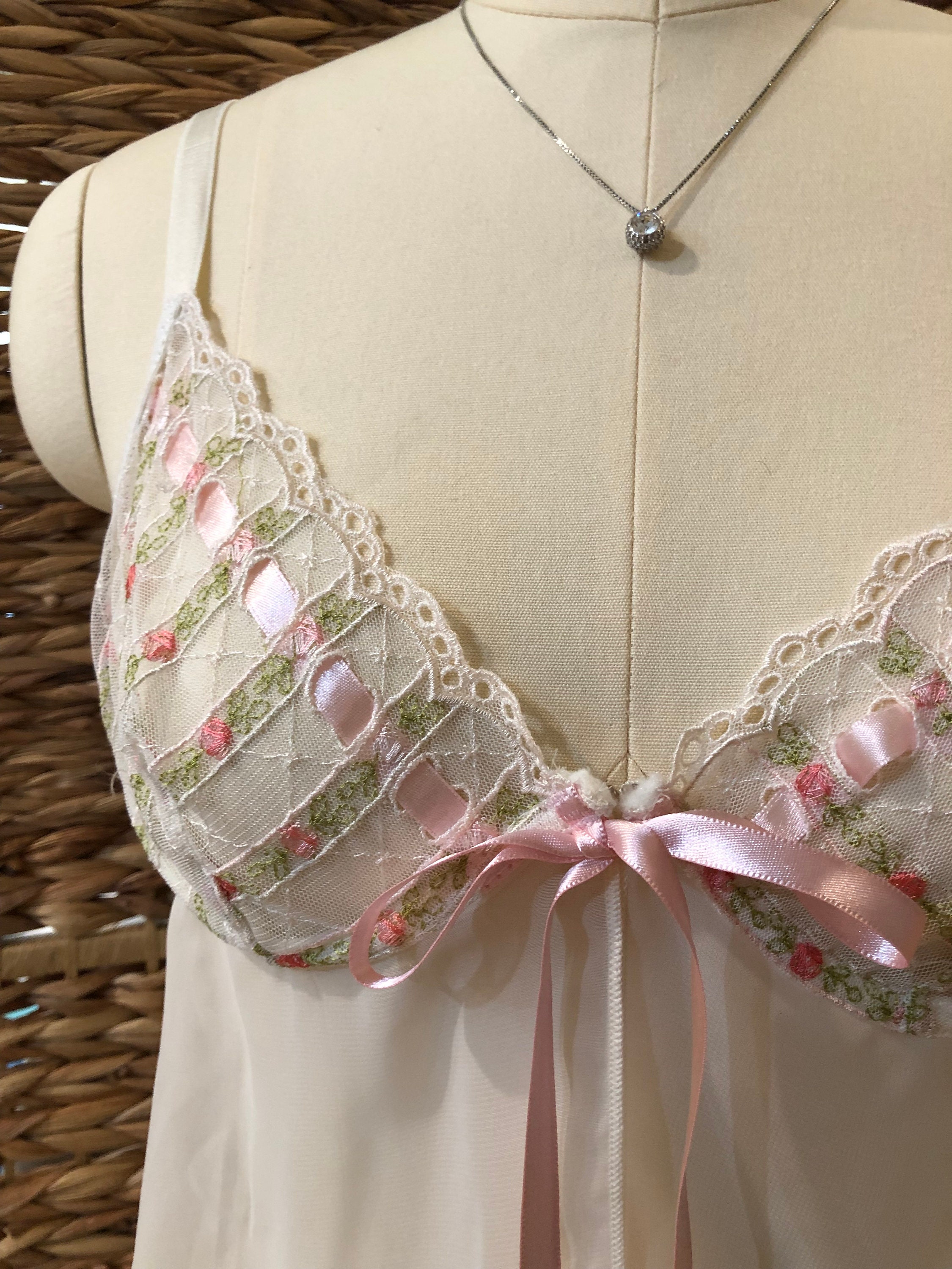 Sheer Ivory Babydoll Lingerie Embroidered Lace Escan Gem
