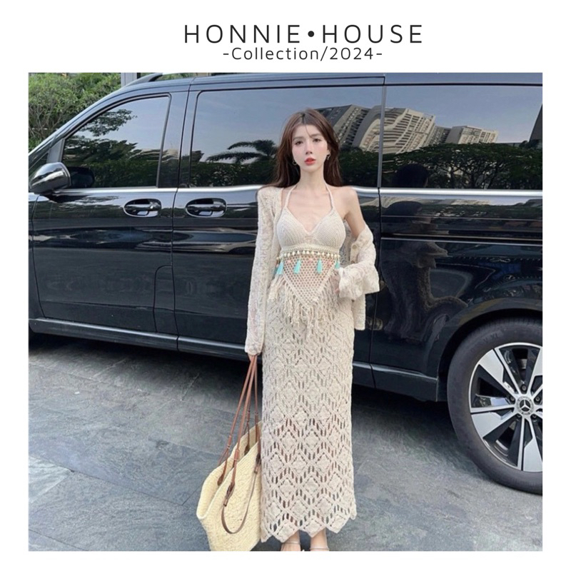 Tag : Ship hoả tốc set bikini ren sợi móc 3 món áo bra tua rua tam giác mix chân váy dài kèm khoác du