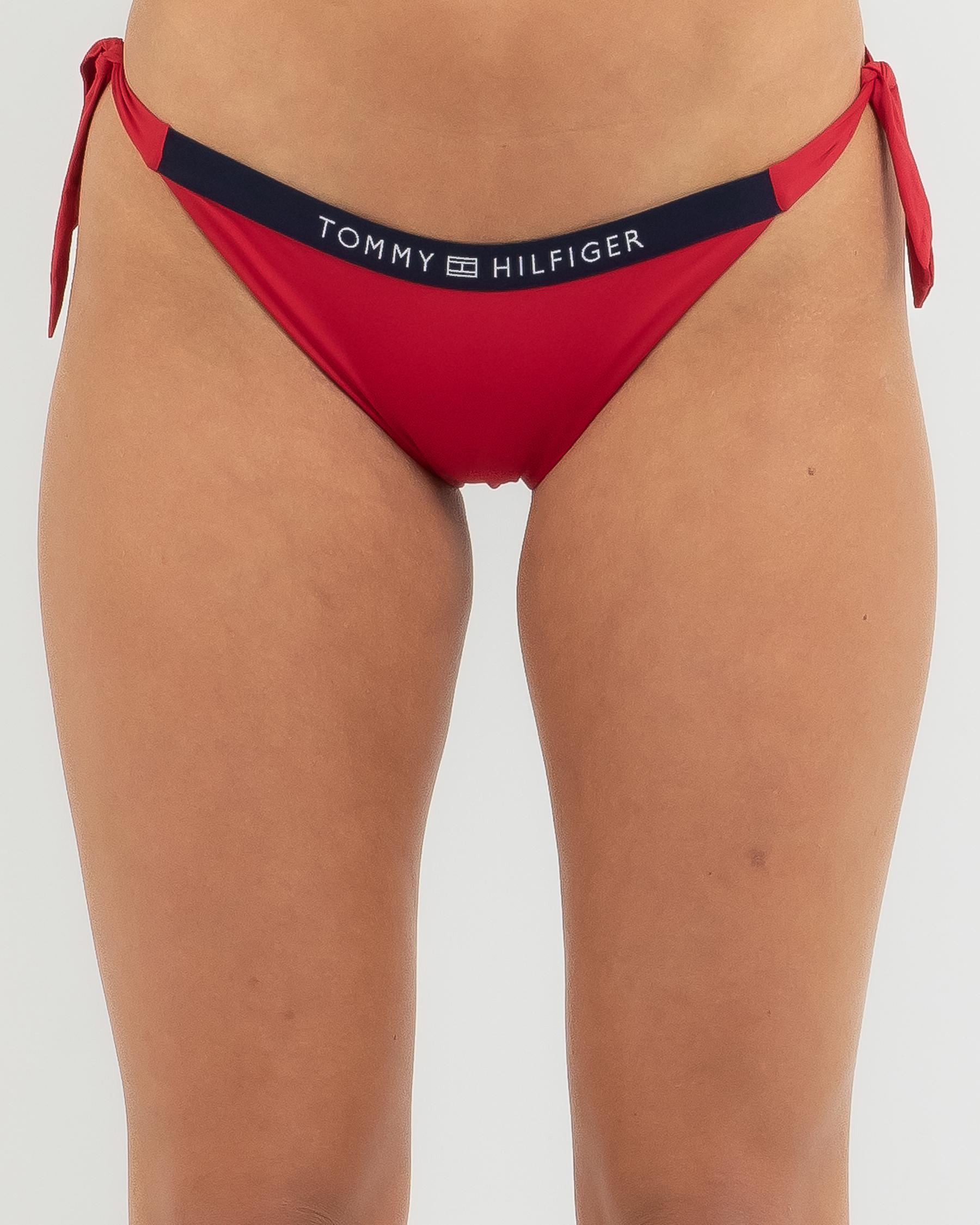Shop Tommy Hilfiger Core Solid Logo Side Tie Cheeky Bikini Bottom In Primary Red Fast Shipping is a popular picture for sexy and hot.