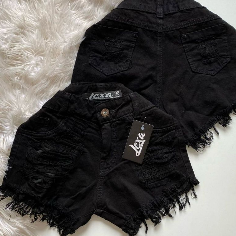 Short Preto Rasgada Jeans Feminino Cintura Alta Jeans Grosso Hot Pant Destroyed Barra Desfiado is a popular picture for sexy and hot.