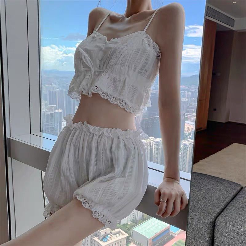 Sleepwear Set Sexy Silk Lingerie Pajamas Top And Bottom White Lace 2 Piece Shopee Malaysia is a popular picture for sexy and hot.