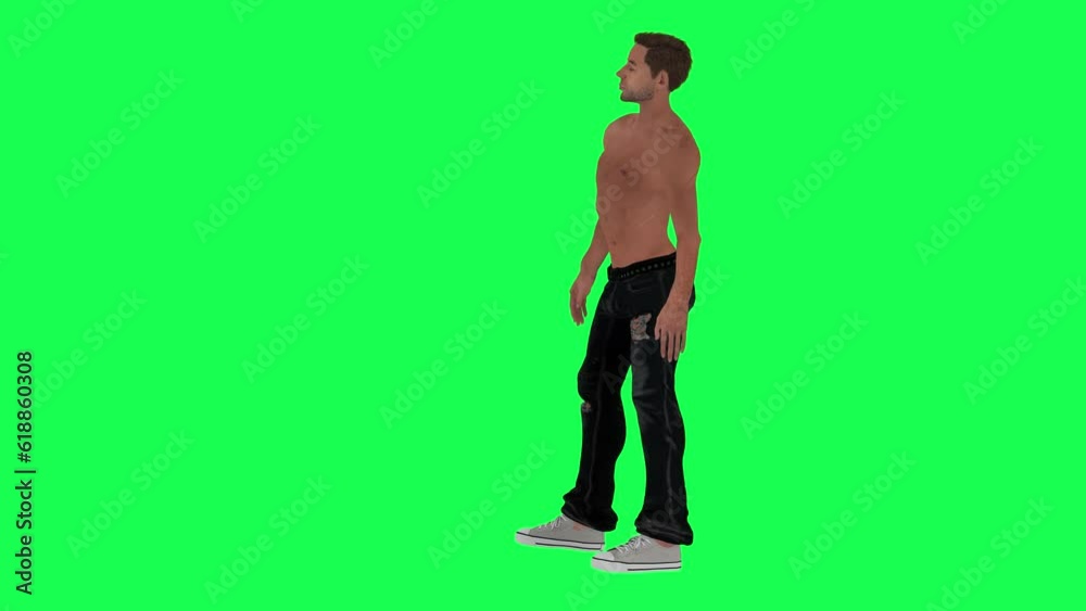 Tag : Slim Half Naked Green Screen Addict Man Waiting From Side Angle In Ripped Jeans And White Shoes