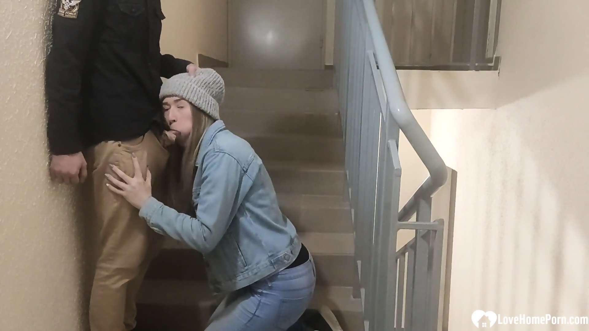 Slutty Babe Gets On Her Knees To On The Staircase