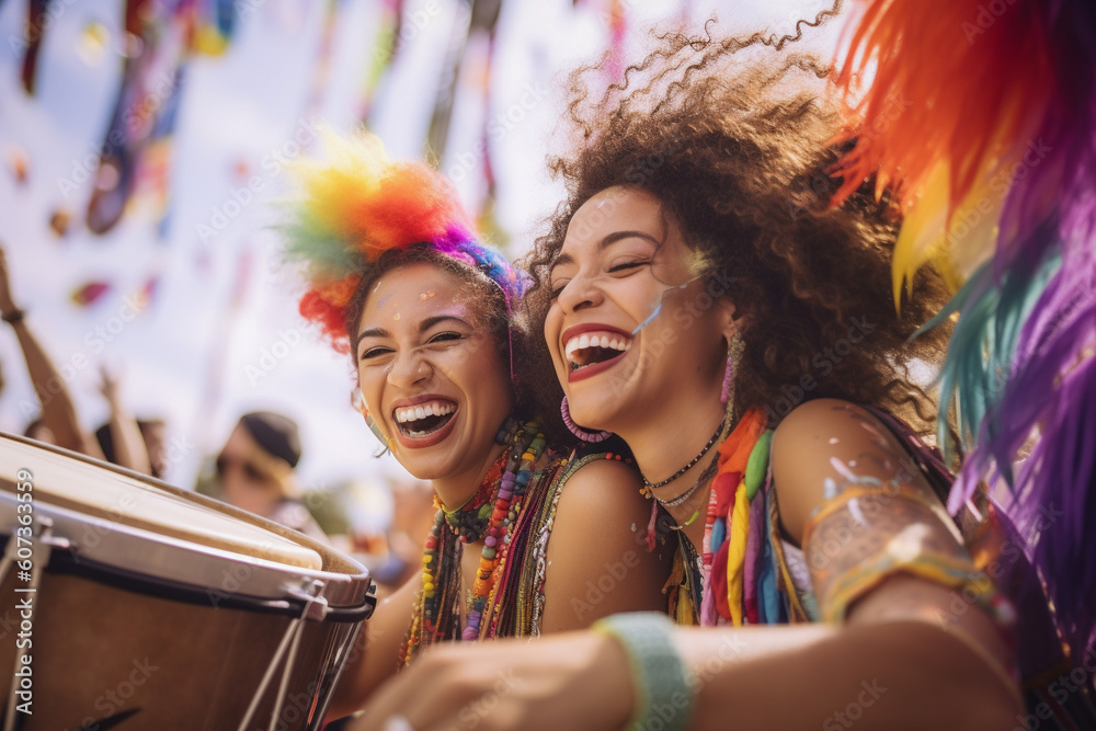 Tag : Smiling Generative AI Couple At LGBTQ Gay Pride Parade In Sao Paulo Love And Diversity In The