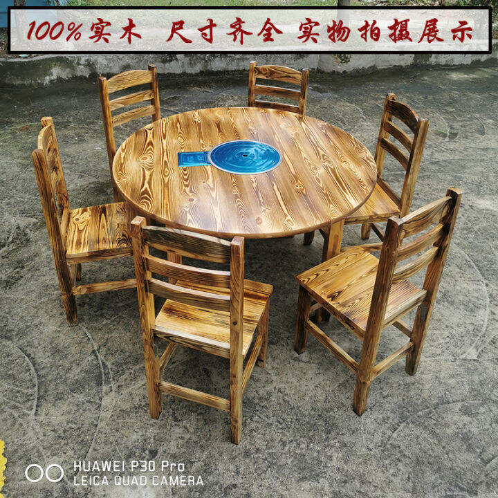 Tag : Solid Wood Hot Pot Table Round Table Gas Stove Integrated Stall Farm Snack Restaurant Pine Table