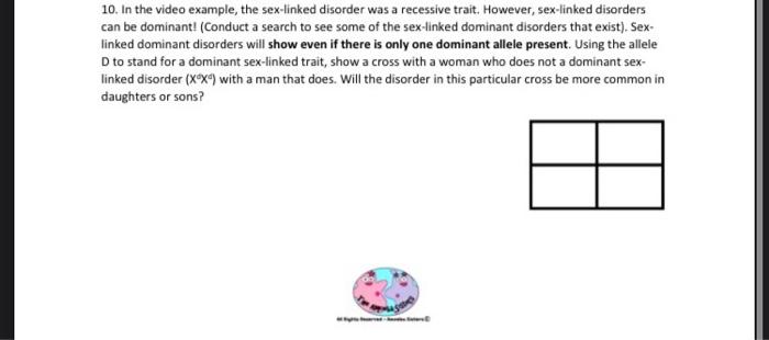 Solved 10 In The Video Example The Sex Linked Disorder Was Chegg pictures has 500 x 400 · 50 kB · jpeg.