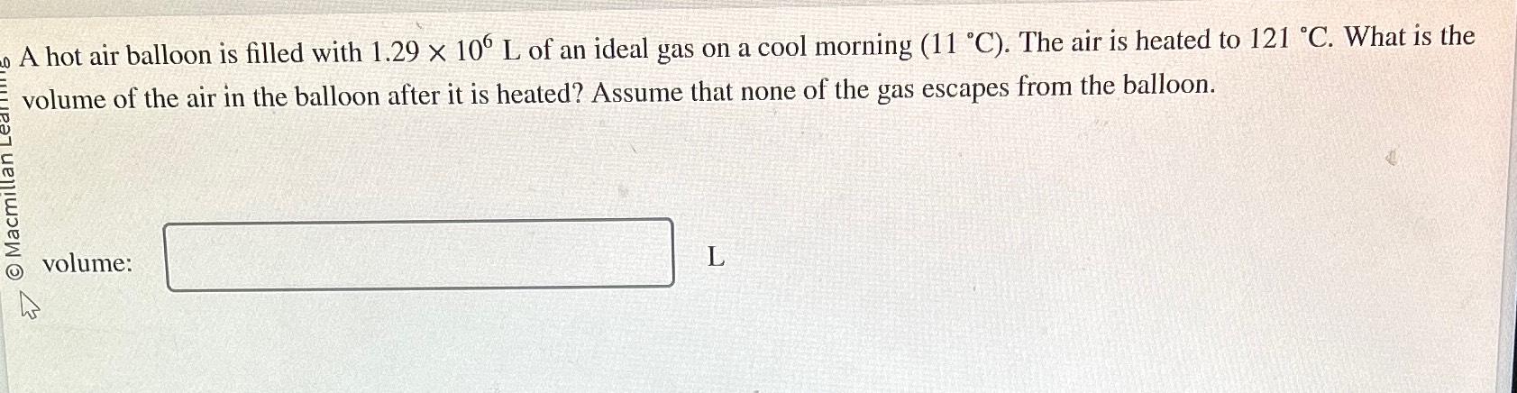 Solved A Hot Air Balloon Is Filled With L Of An Chegg pictures has 500 x 400 · 50 kB · jpeg.