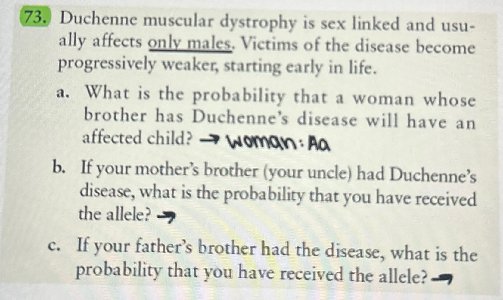Solved Duchenne Muscular Dystrophy Is Sex Linked And Usually Chegg is a popular picture for sexy and hot.