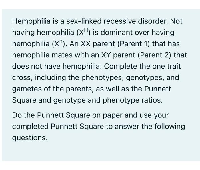 Tag : Solved Hemophilia Is A Sex Linked Recessive Disorder Not Chegg