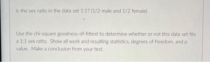 Solved Is The Sex Ratio In The Data Set Male And Chegg 68040