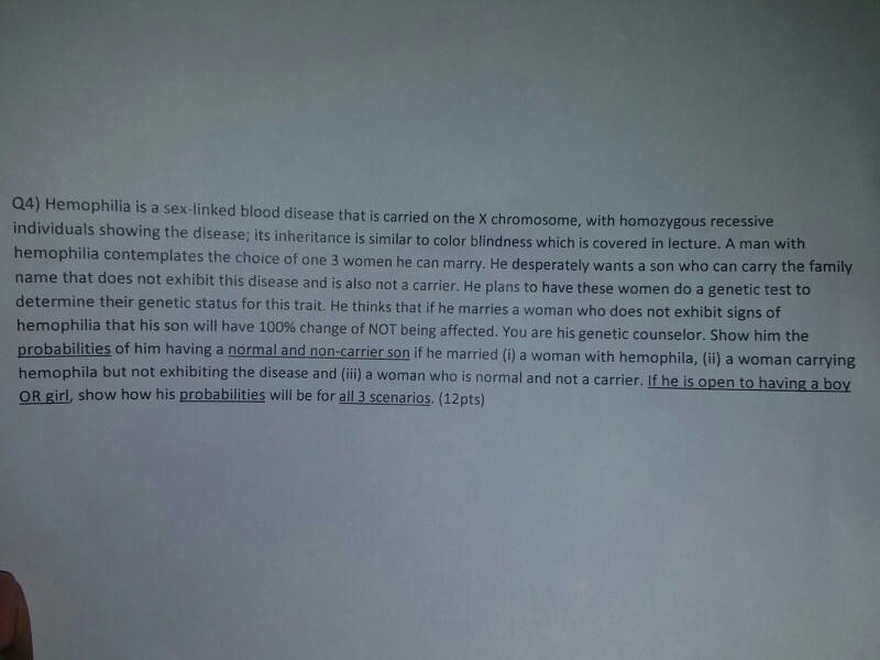 Solved Q4 Hemophilia Is A Sex Linked Blood Disease That Is Chegg pictures has 500 x 400 · 50 kB · jpeg.