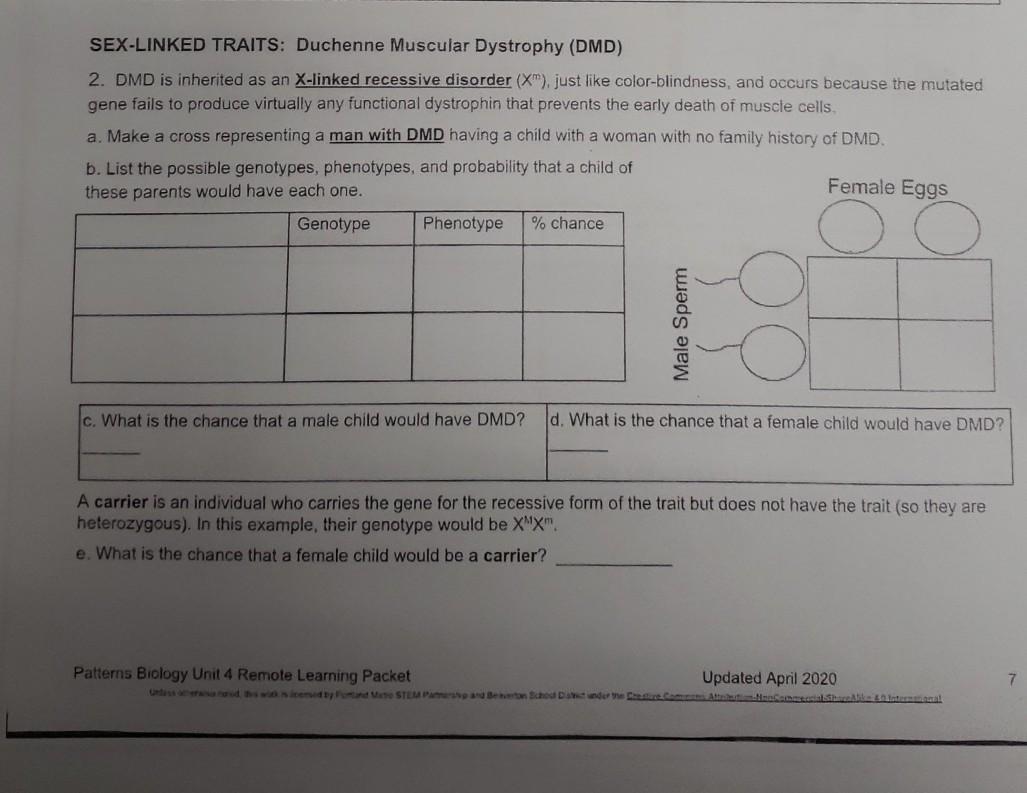 Tag : Solved SEX LINKED TRAITS Duchenne Muscular Dystrophy DMD Chegg