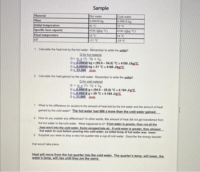 Solved Sample Calculate The Heat Lost By The Hot Water Chegg pictures has 500 x 400 · 50 kB · jpeg.