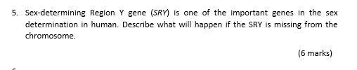 Solved Sex Determining Region Y Gene SRY Is One Of The Chegg pictures has 500 x 400 · 50 kB · jpeg.