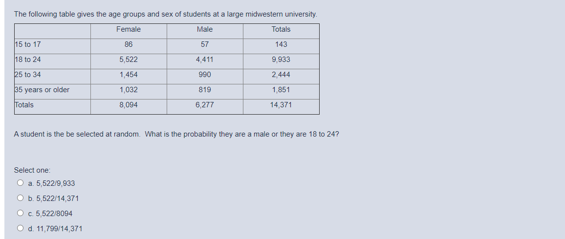 Tag : Solved The Following Table Gives The Age Groups And Sex Of Chegg