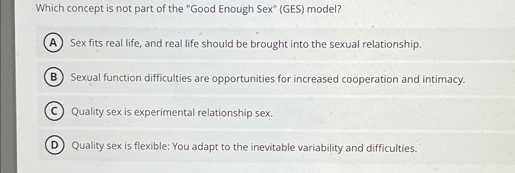 Tag : Solved Which Concept Is Not Part Of The Good Enough Sex Chegg