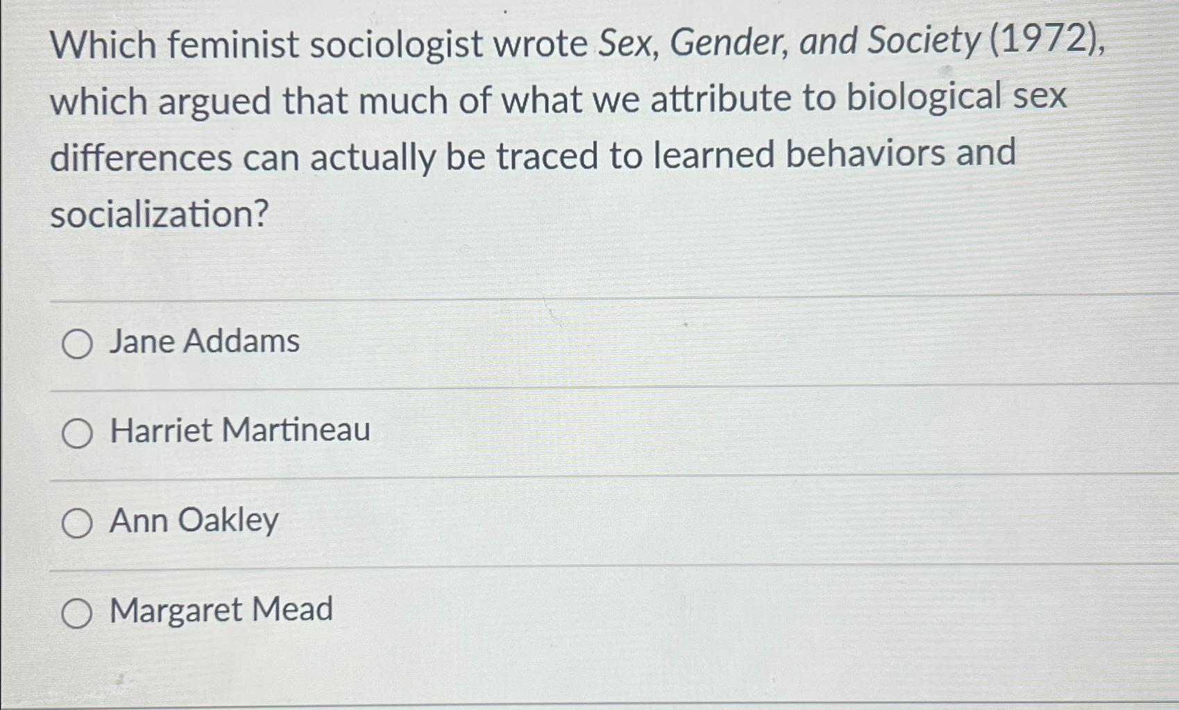 Tag : Solved Which Feminist Sociologist Wrote Sex Gender And Chegg