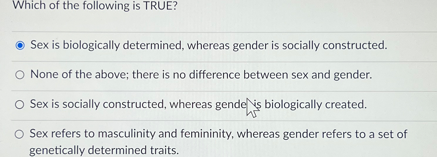Solved Which Of The Following Is TRUE Sex Is Biologically Chegg is a popular picture for sexy and hot.