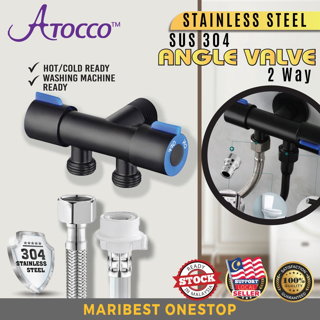 Stainless Steel SUS304 Angle Valve 2 Way Hot Cold Water Tap Pipe Extender Splitter Washing