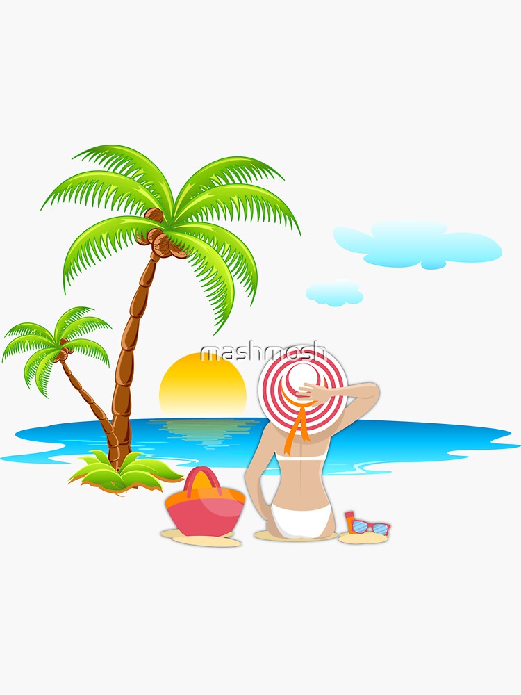 Tag : Sticker Belle Femme En Bikini Se Faire Bronzer Sur La Plage Avec Cocotier Par Mashmosh