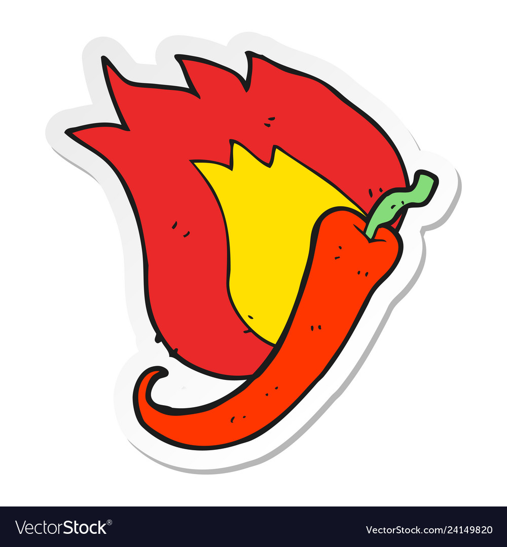 Sticker Of A Cartoon Flaming Hot Chilli Pepper Vector Image