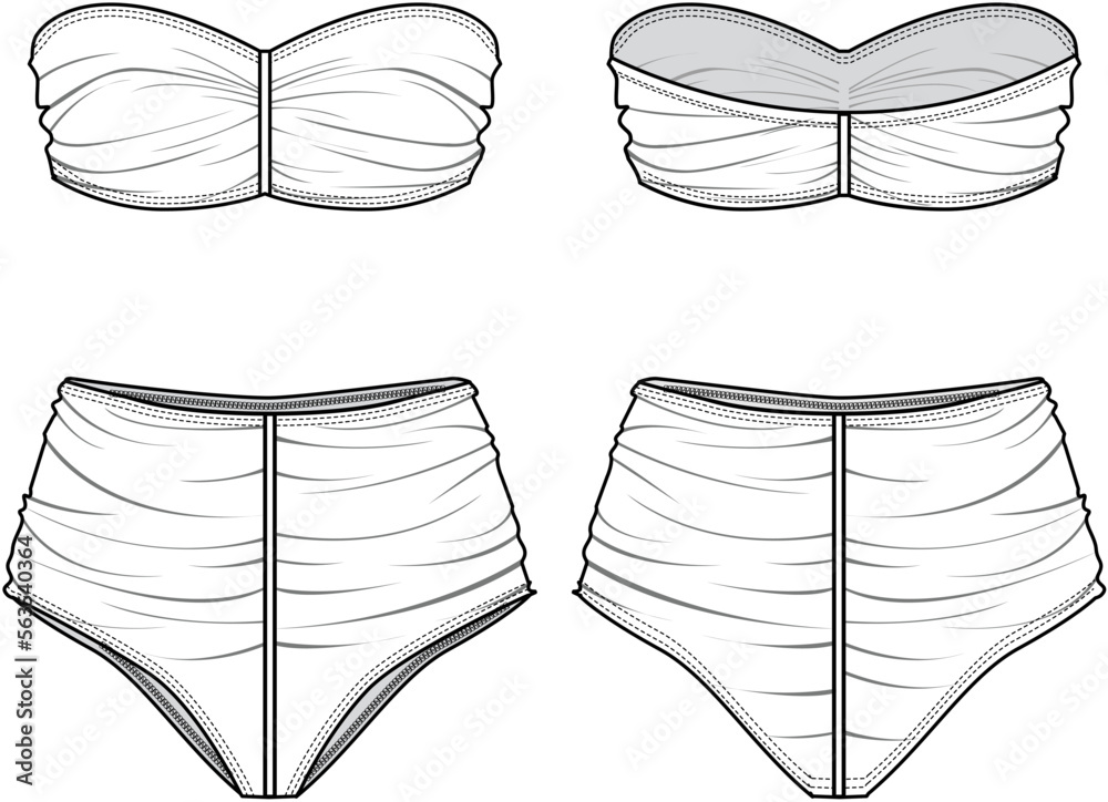 Strapless Ruched Bikini Set Front And Back View Fashion Illustration Vector CAD Technical pictures has 500 x 400 · 50 kB · jpeg.