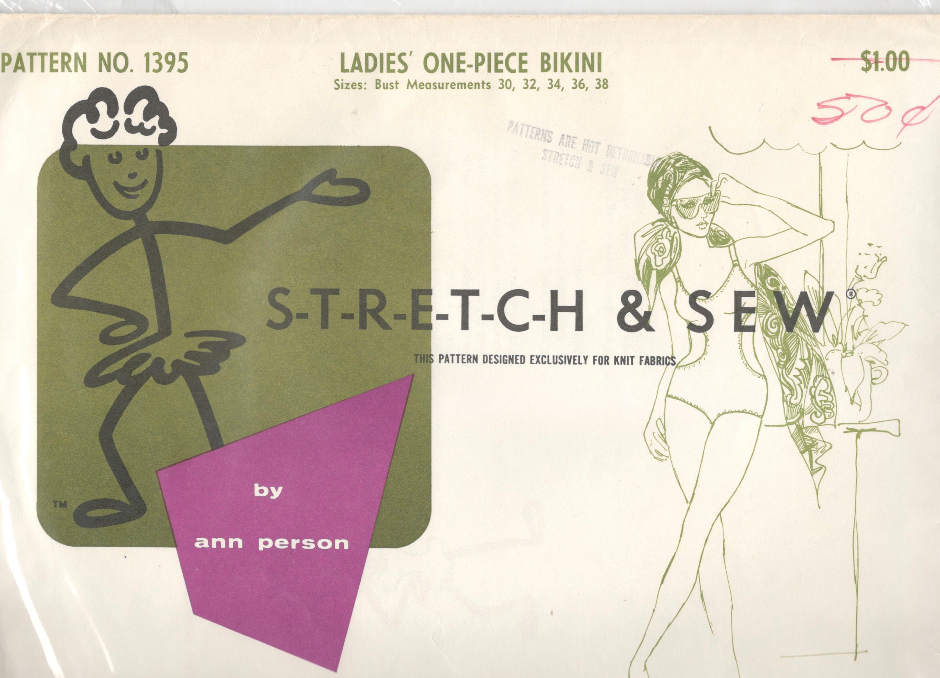 Tag : Stretch Sew 1395 1960s Misses One Piece Bikini SWIMSUIT Pattern Womens Vintage Sewing Pattern