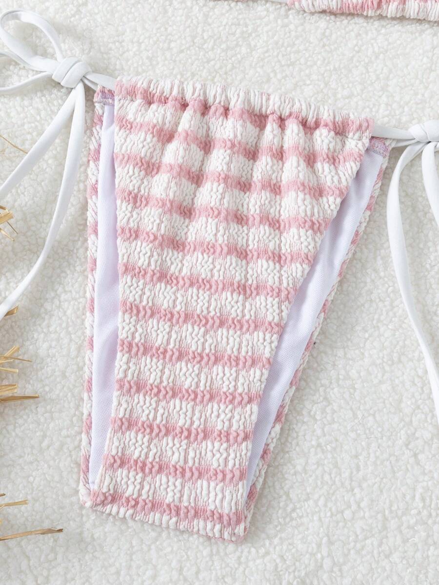 Striped Fabric Small Fresh Cute Split Swimsuit Two Piece Set Bikini Beach Pool Soaking Hot is a popular picture for sexy and hot.