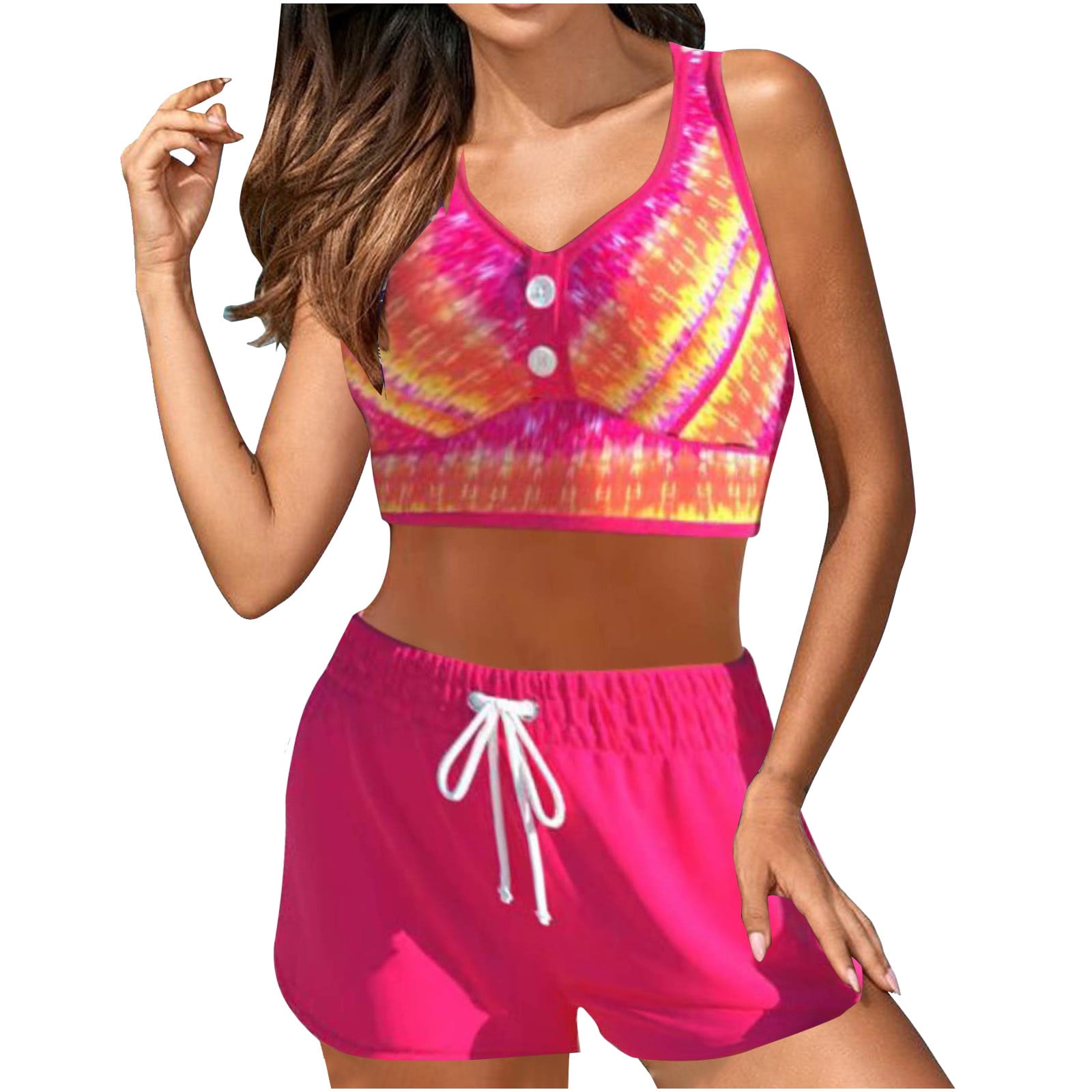 Summer Savings TAGOLD Plus Size Summer Swimsuit For Women Women Bikini Print Strappy Back Set 94302