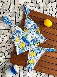 Swim Mod Pcs Textured Fabric Fruit Print Ruffle Strap Casual Vacation Women Camisole Bikini is a popular picture for sexy and hot.