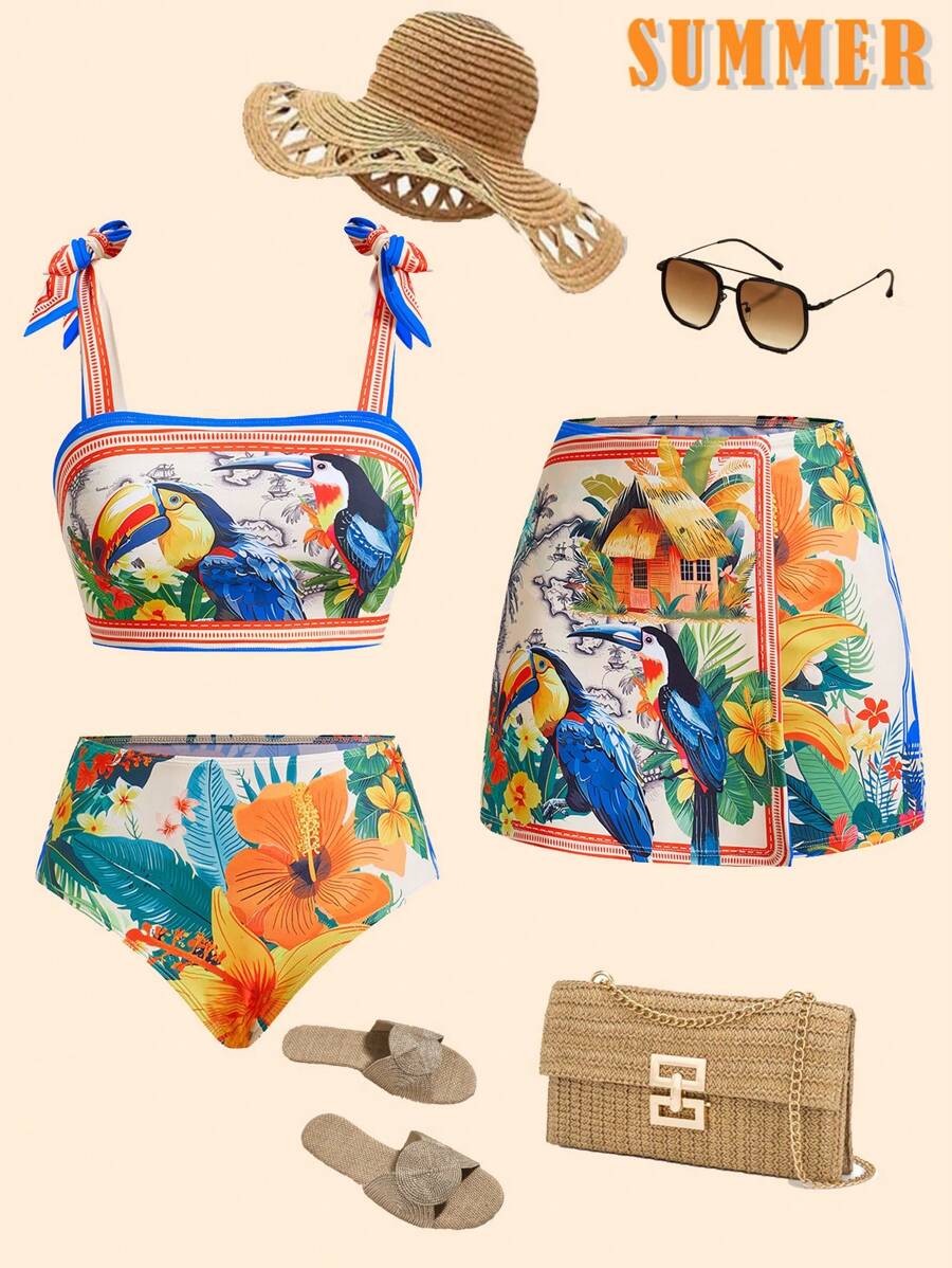 Swim Oasis Women S Tropical Plant Print Tankini Bikini Set Set With Knot Detail And Matching 185472