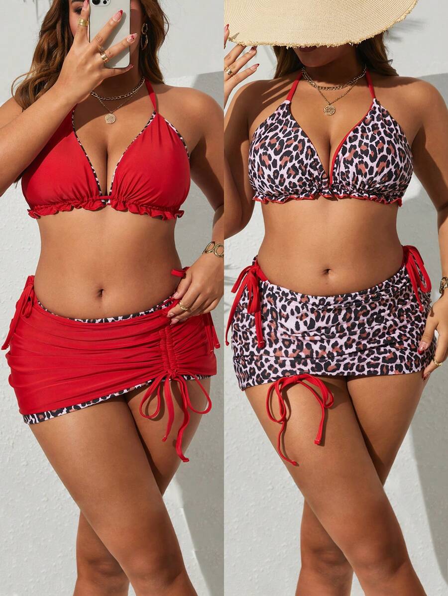 Tag : Swim SXY Plus Size Pcs Women Halter Wrap Bikini Top And Drawstring High Waisted Leopard Print