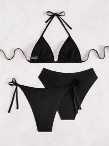 Swim Vcay Peças Conjunto de Maiô Bikini Triângulo Sem Costas de Cor Sólida para Mulheres Plus is a popular picture for sexy and hot.