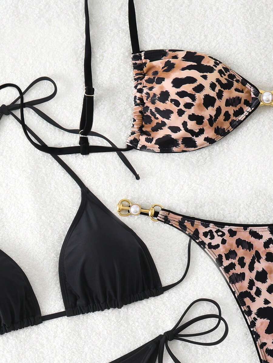 Tag : Swim Vcay Springbreak 3pcs Set Women Swimsuit Triangle Straps Tie Side Bikini Top And Leopard