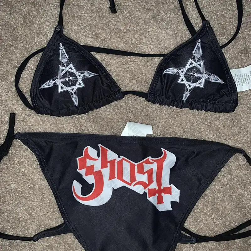 Tag : Swimsuit Bathing Suit Swimming Suit Sexy Women Letter Y2k Graphic Swimwear Bikini Set Bra Tie