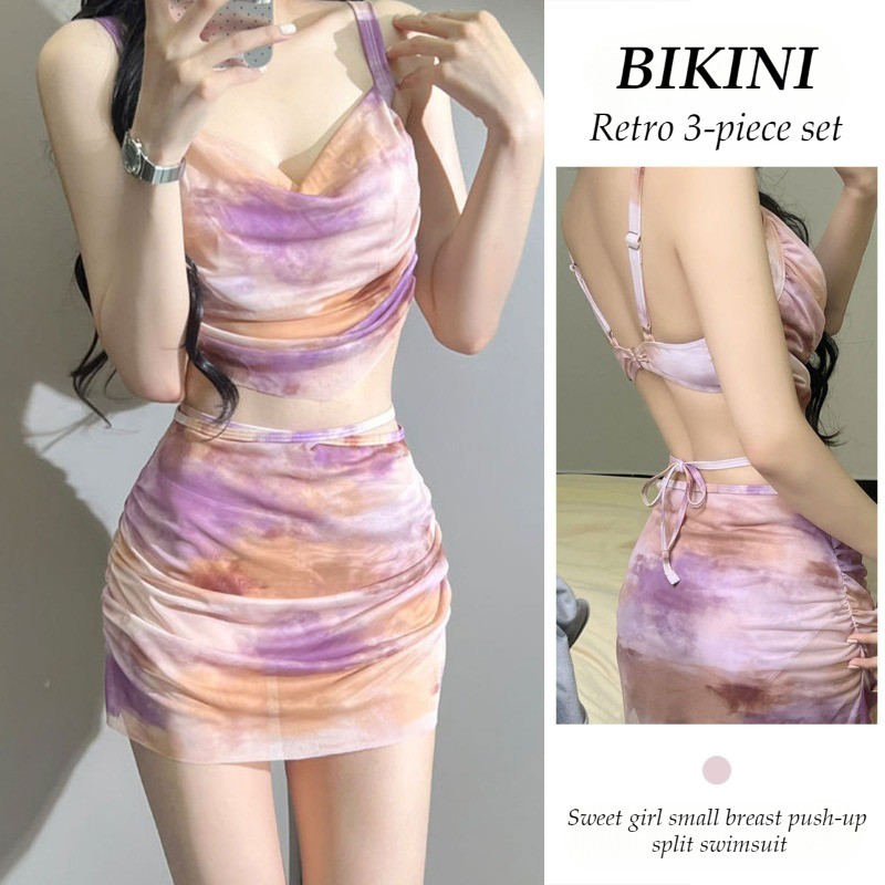 Tag : Swimsuit Female Sexy Sweet Retro Bikini Three Piece Swimsuit Korean Style Fashion Tie Dye