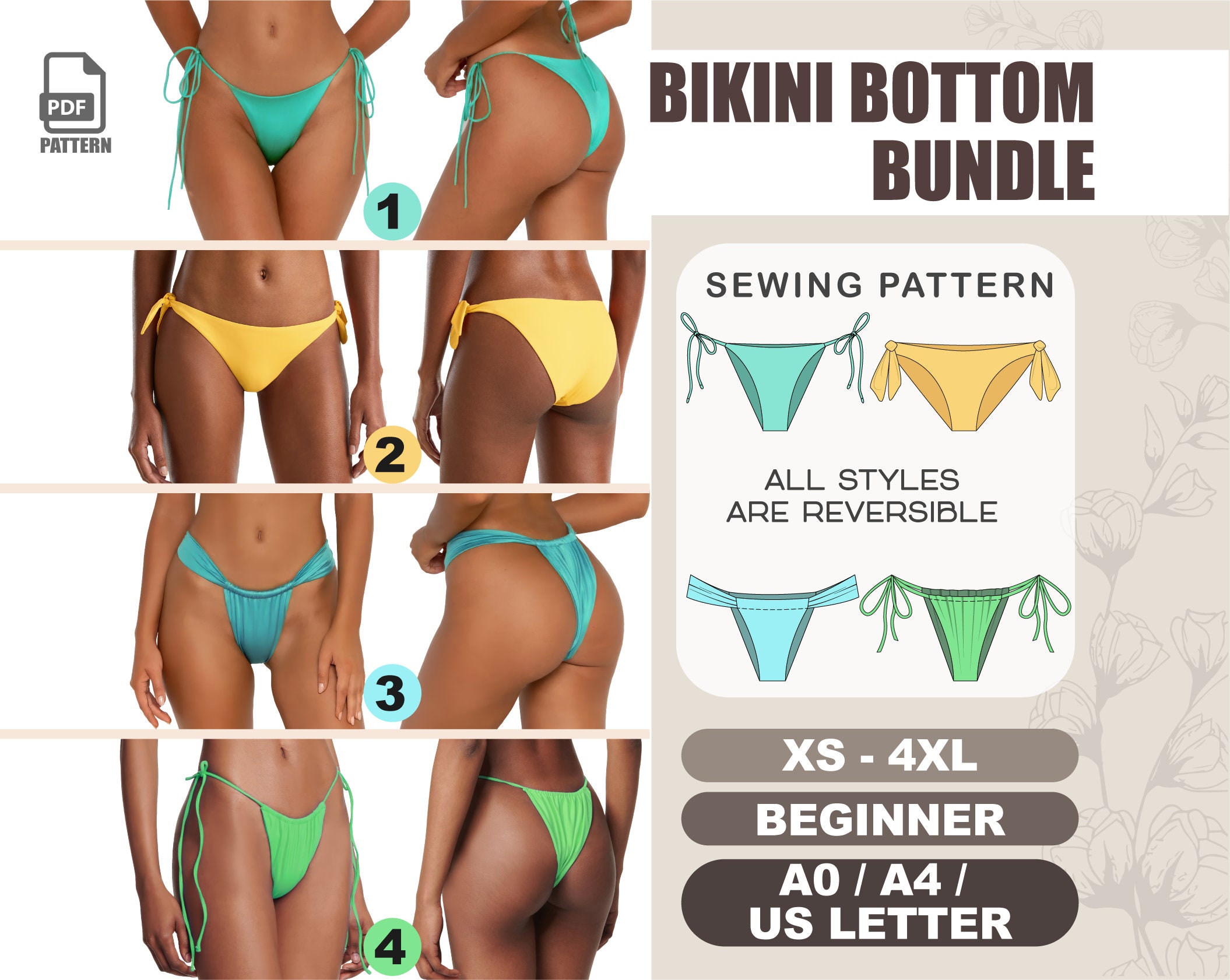 Tag : Swimsuit Sewing Pattern Bikini Patterns For Beginners XS 4XL PDF Plus Size Bikini Pattern