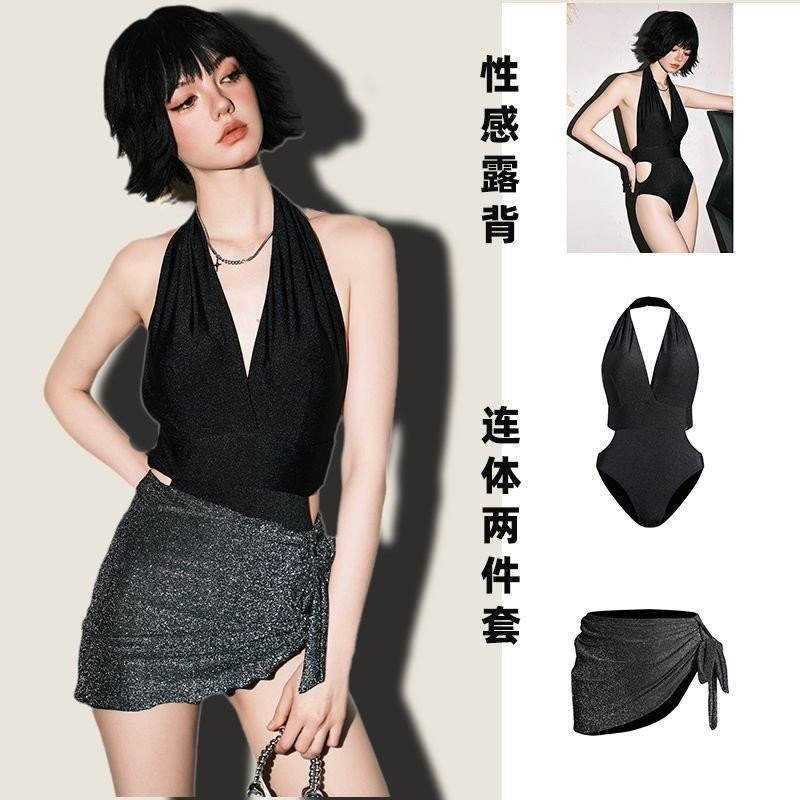Swimsuit Sexy Backless Pure Desire Retro Halter Neck Cover Belly One Piece Bikini Two Piece Set is a popular picture for sexy and hot.