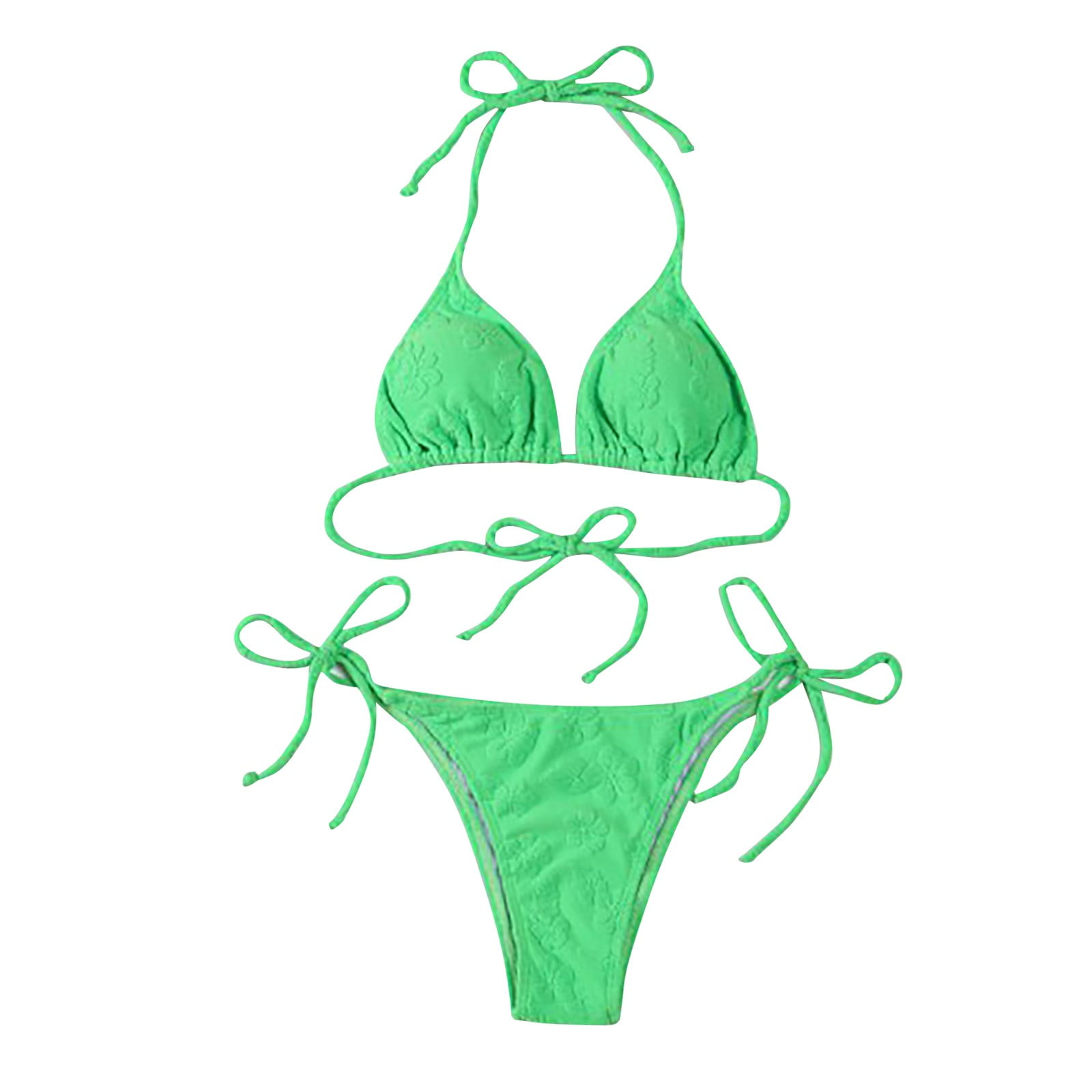 Swimsuits For Women Solid Color Separate Bikini Halter Neck Gathering Backless Beachwear Green is a popular picture for sexy and hot.