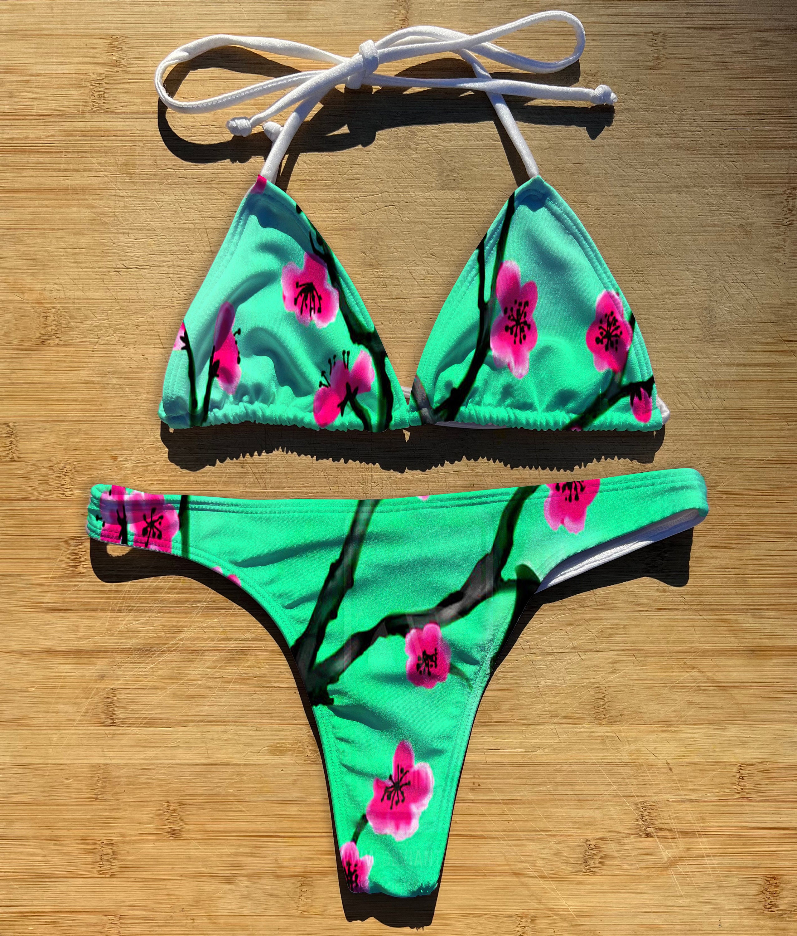 Tag : Swimwear Bikini Or Piece Set Green Tea Thong Cheeky Full Coverage Triangle String Tie