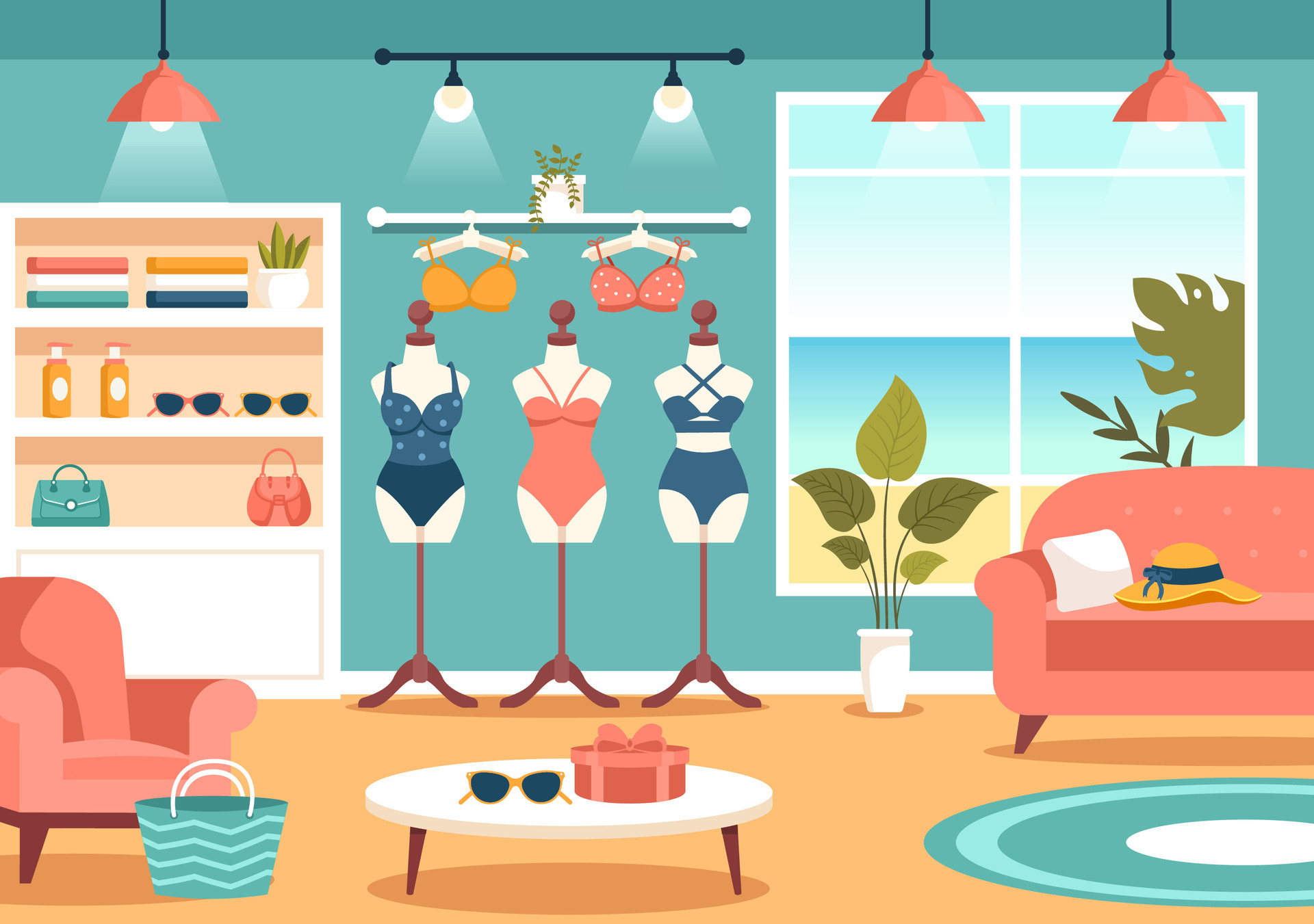Swimwear Illustration Featuring A Variety Of Bikini And Swimsuit Designs For Both Women And Men 120080