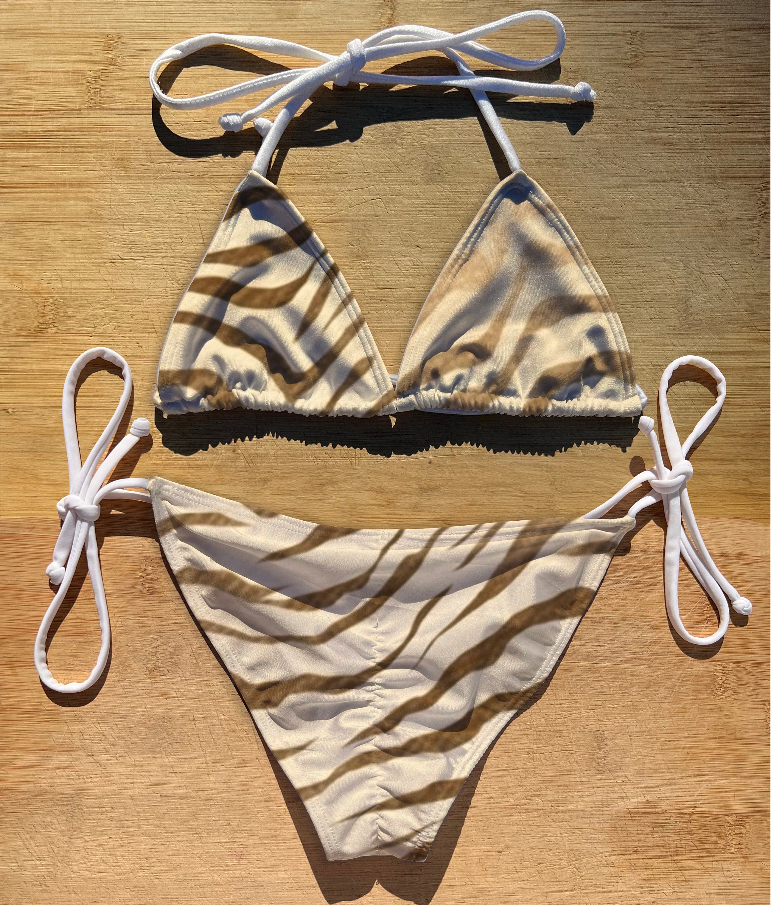 Tag : Swimwear Scrunch Butt Tie Triangle Top Bikini Set Sand Tiger Thong Cheeky Full Coverage String