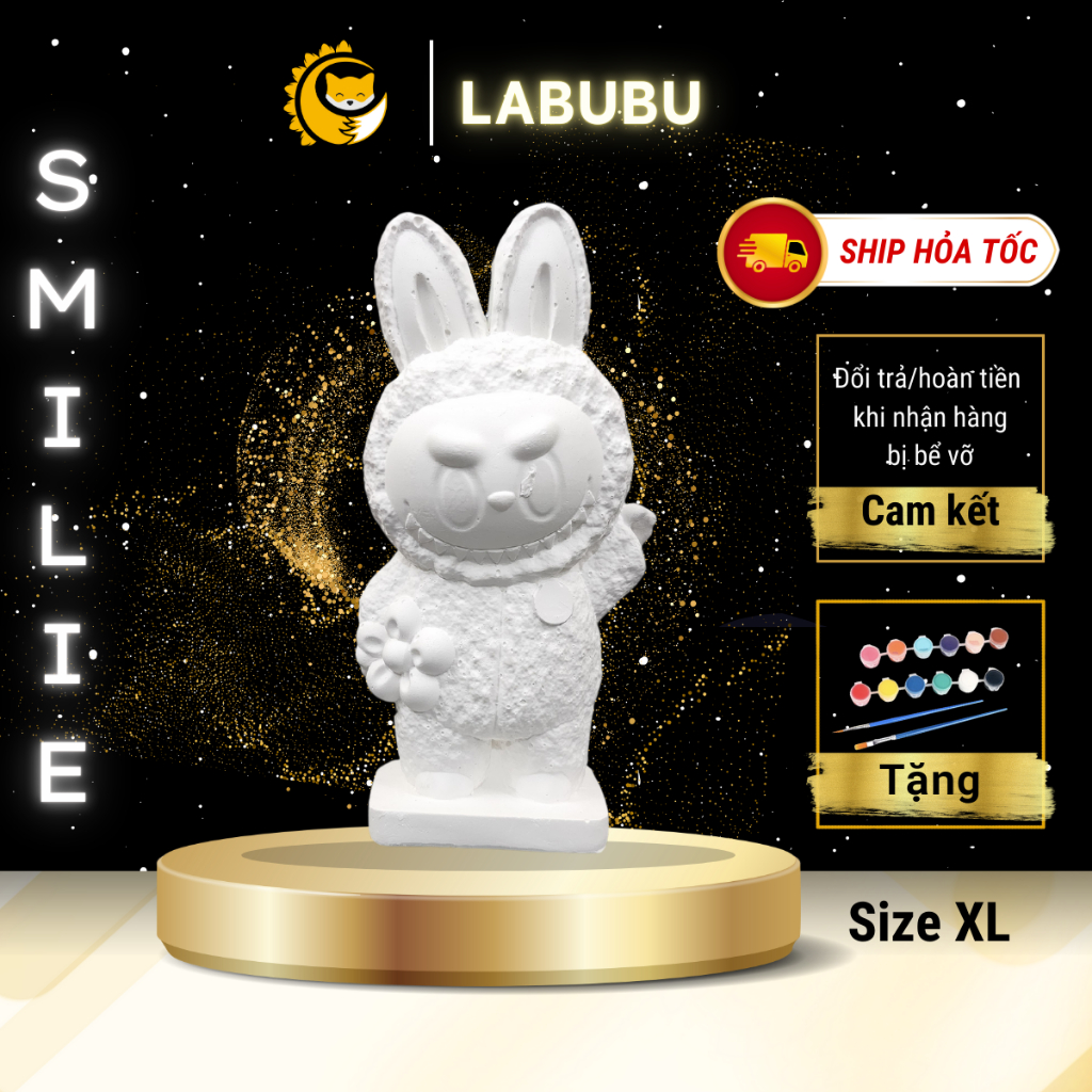 Tượng Tô Màu Thạch Cao LABUBU đứng bục vuông tượng hot mẫu mã đa dạng Tặng kèm cọ và màu vẽ
