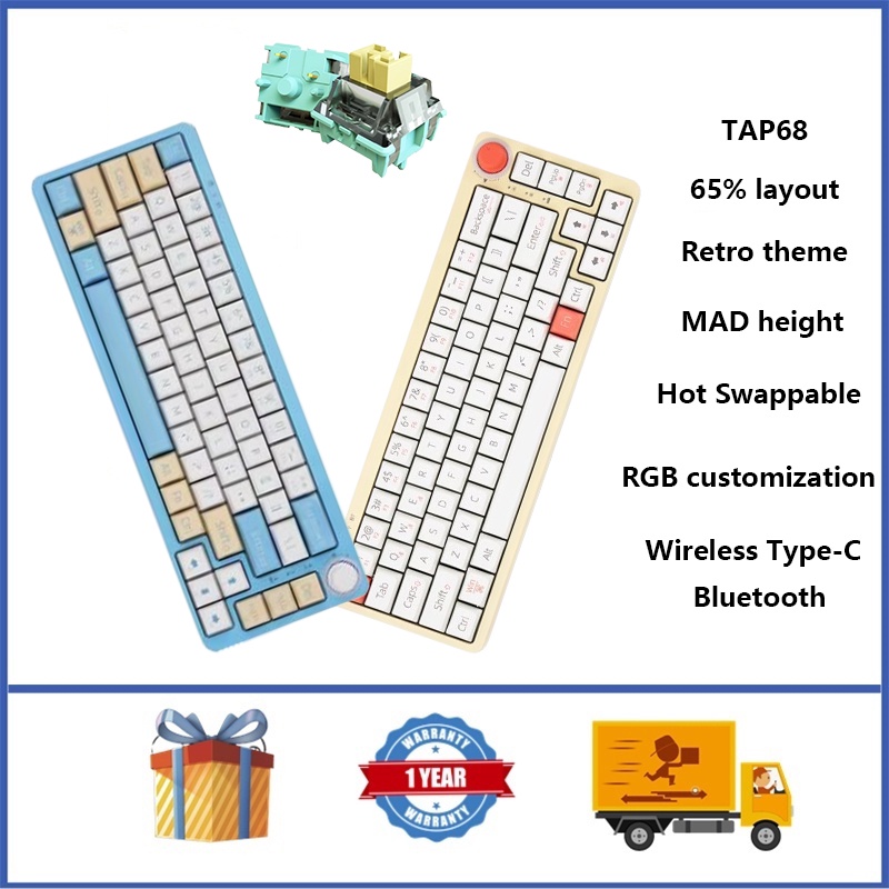 TAP68 65 Retro Wireless Mechanical Keyboard Hot Swappable RGB Custom Mechanical Keyboard is a popular picture for sexy and hot.
