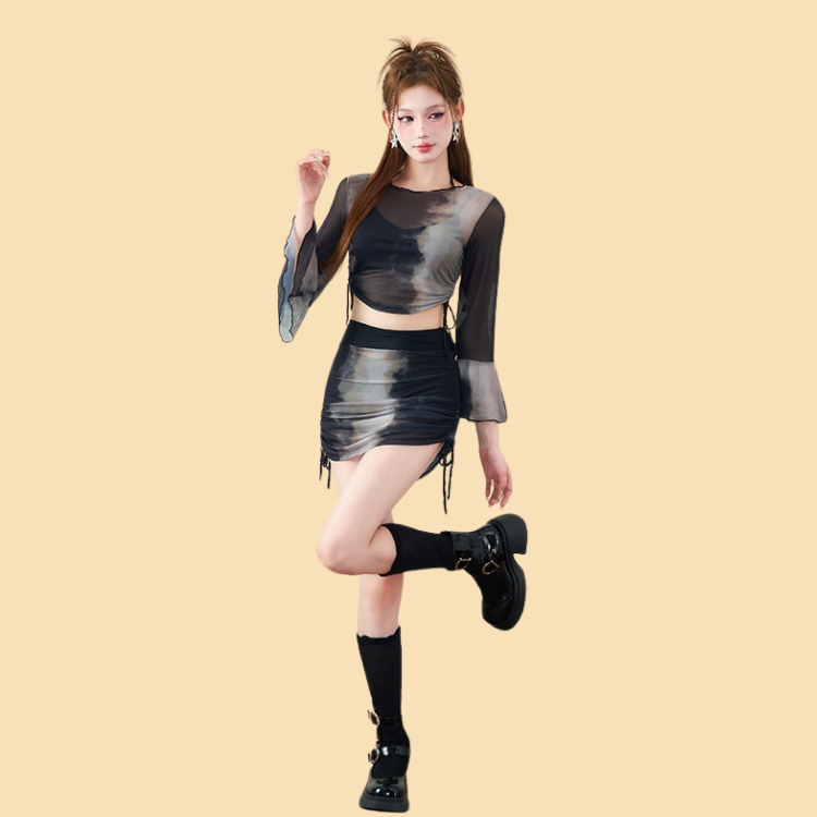 Tag : THANH LÝ Bikini đi biển giá rẻ 4 mảnh áo loang độc đáo áo dài tay kín tay kèm chân váy rút dây