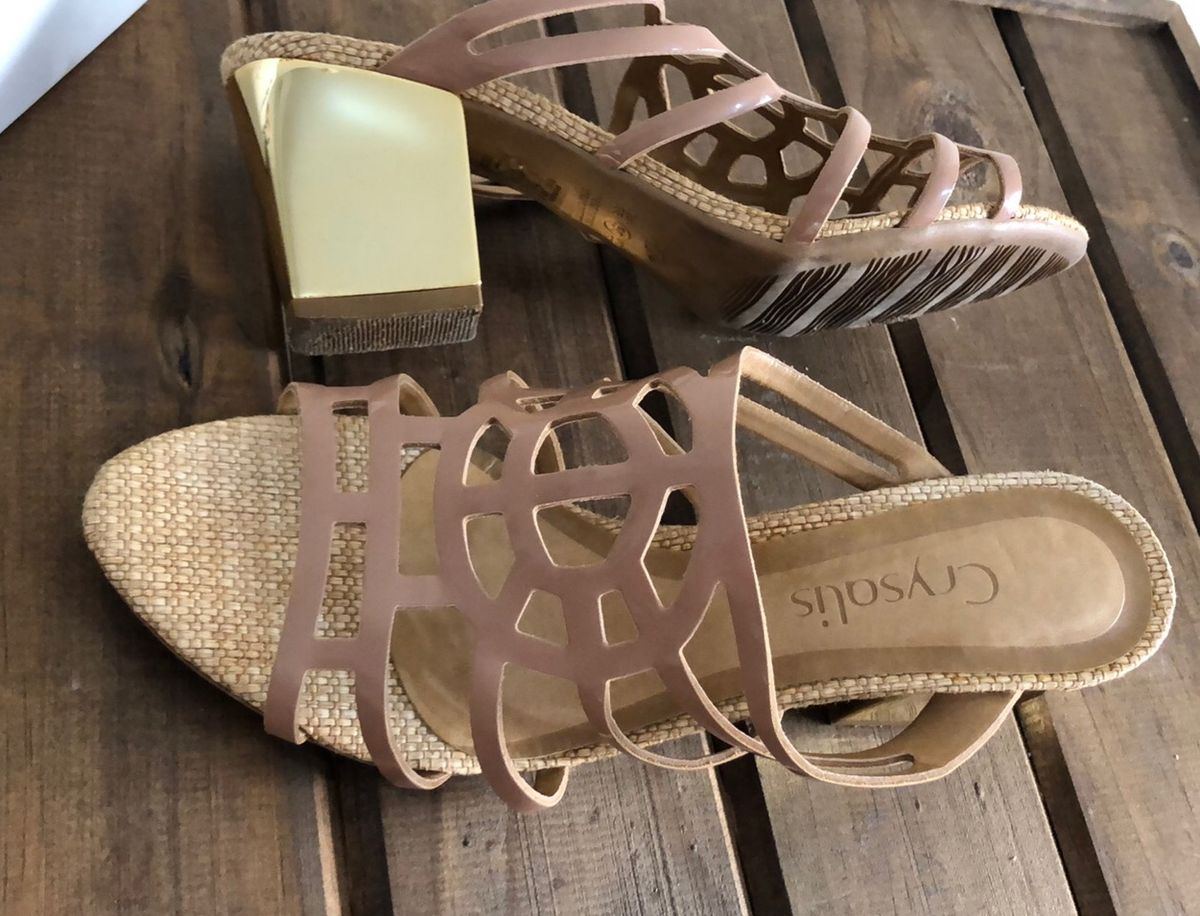 Tag : Tamanco Nude de Salto Grosso Dourado Sandália Feminina Chrysalis Usado 76532209 enjoei